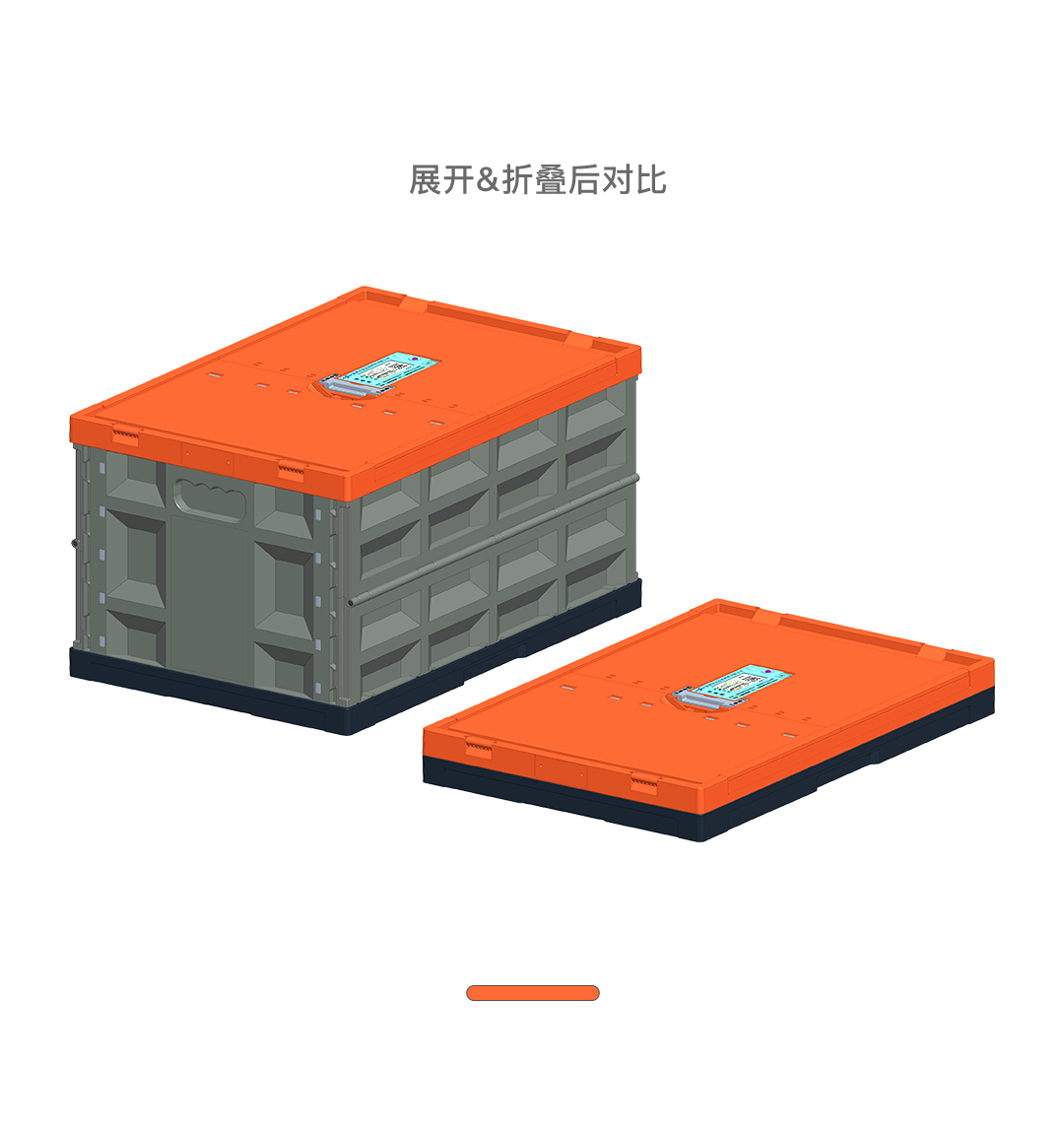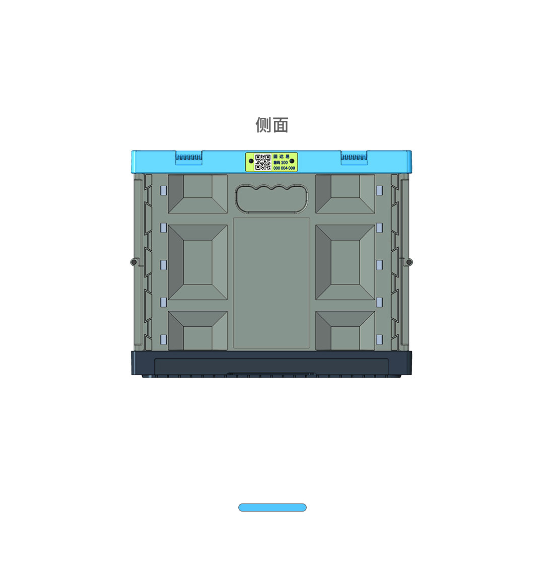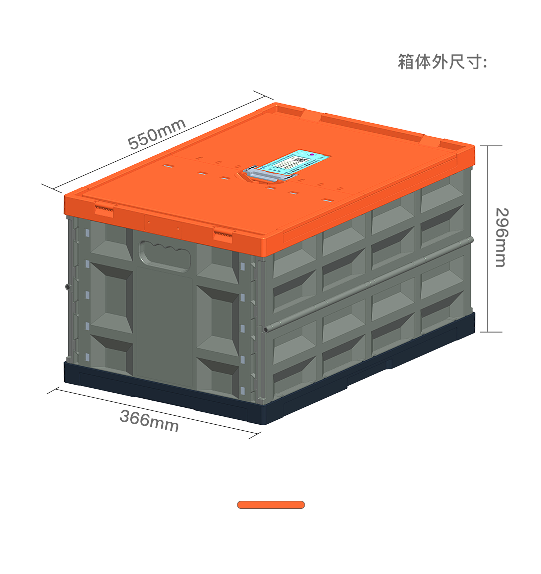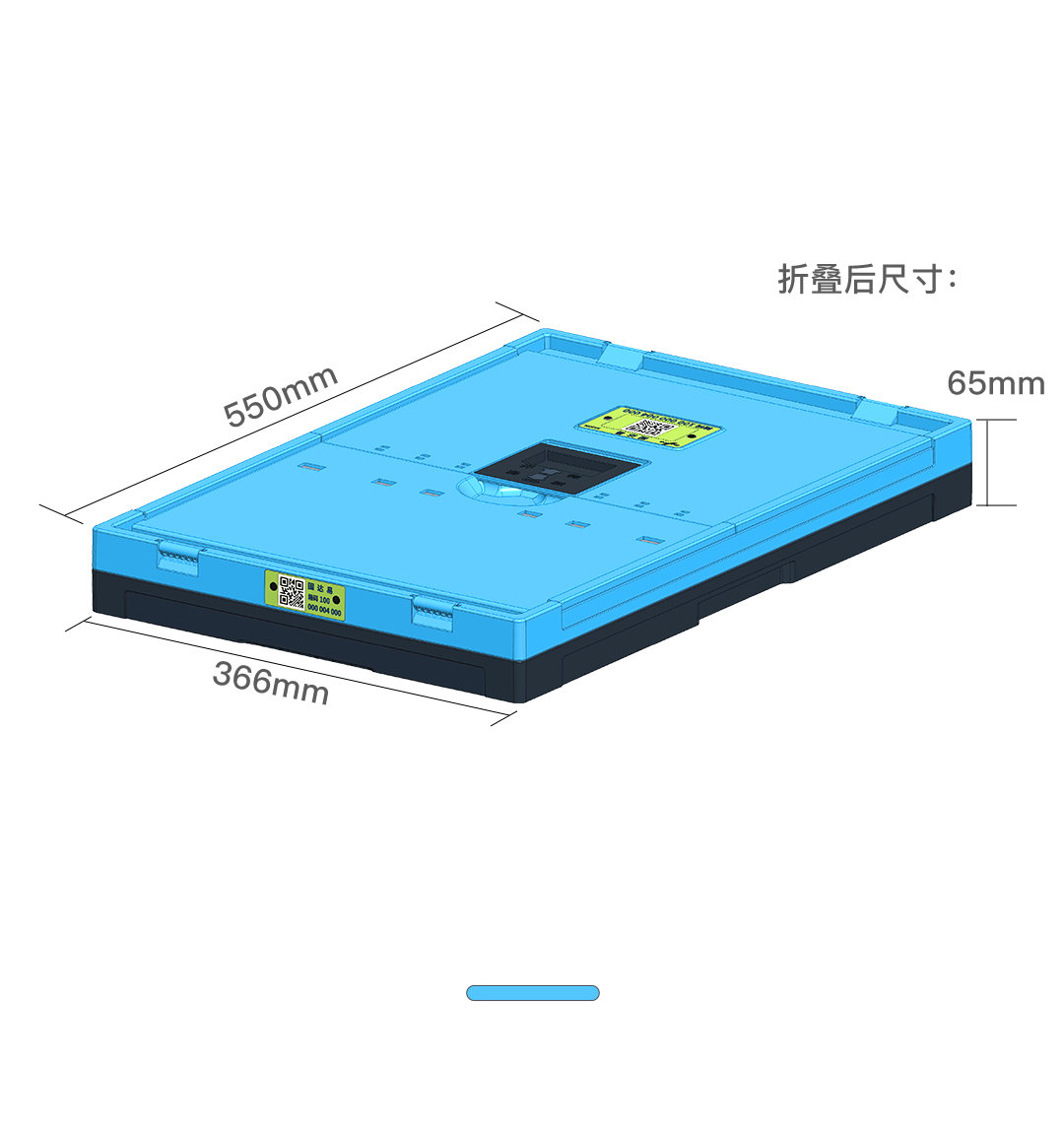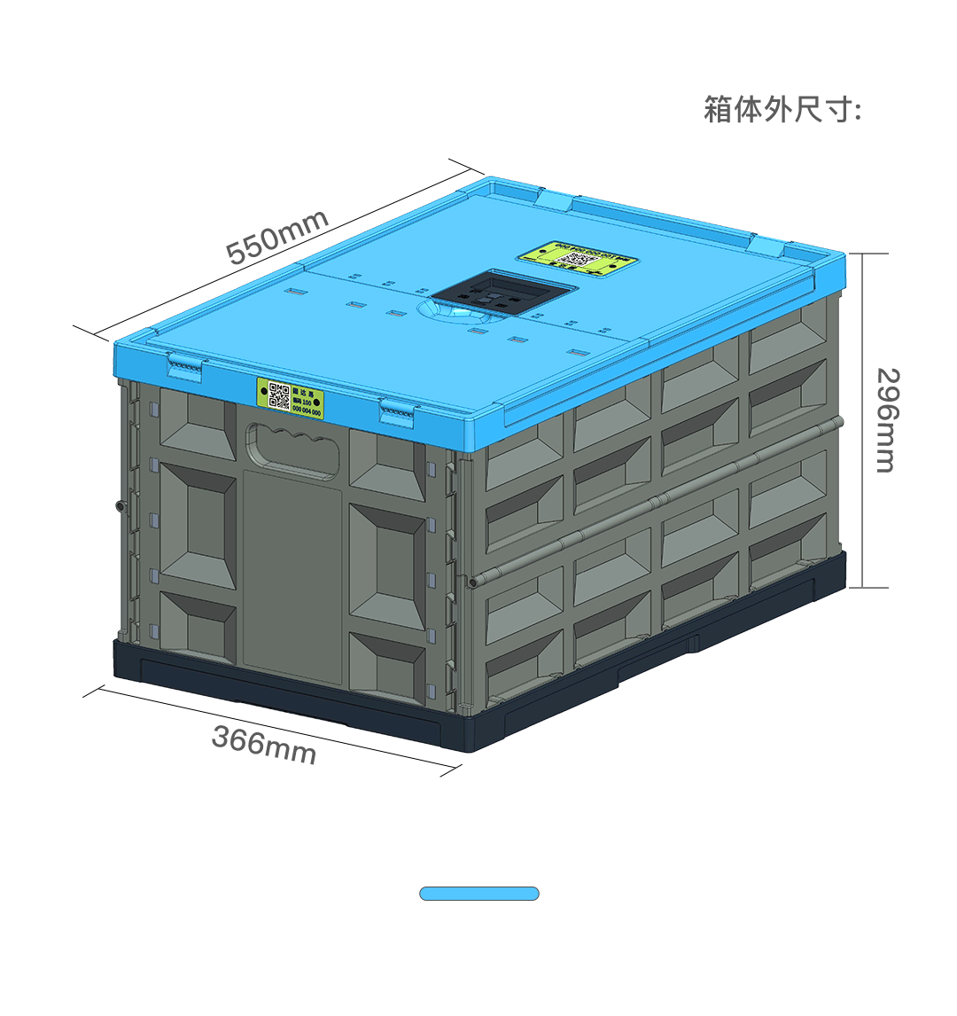 21.7″L x 14.6″W x 11.8″H; 45L(12 Gallon volume);collapses to 2.6″. Includes embedded QR code/ID cards on the lid & side, allowing instant scanning for efficient warehouse inventory management.